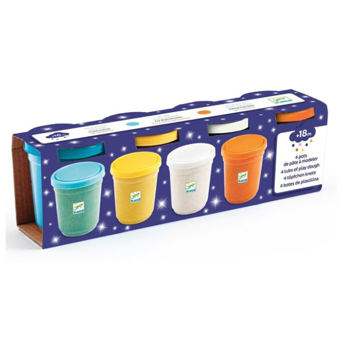 A diversão dos pequenos exploradores está garantida com este conjunto de 4 potes de plasticina com glitter colorido. Enquanto brincam, aprendem a manipular e formar figuras de uma forma simples e divertida.