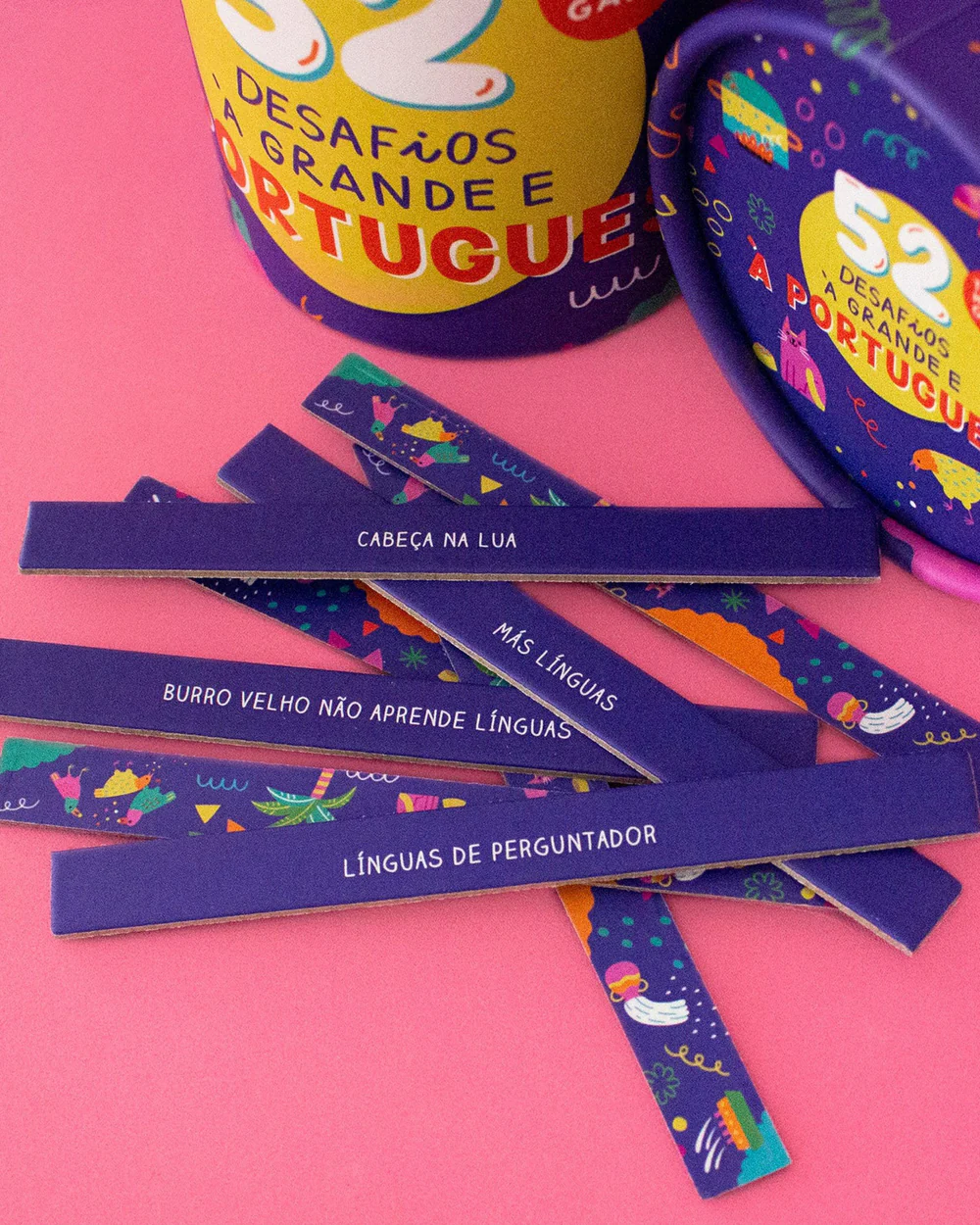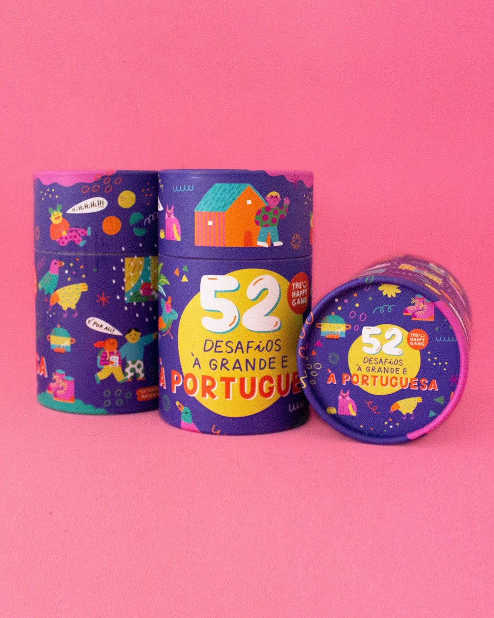 O Jogo "52 Desafios à Grande e à Portuguesa" do The Happy Gang explora expressões portuguesas de forma divertida. Com 52 cartões ilustrados pela Ana Seixas, este jogo incentiva a criatividade através de desenhos ou mímica. Perfeito para famílias e amigos, proporciona risadas e memórias incríveis.