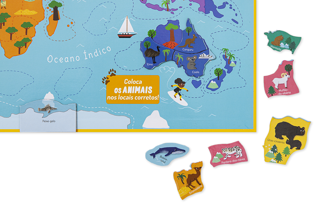 Para ficares a saber tudo sobre os animais e onde se encontram no mundo! Nesta caixa encontrarás um livro ilustrado cheio de informação detalhada sobre os animais e ainda terás a oportunidade de perceber onde vive cada um, montando o puzzle magnético no tabuleiro. Diversão e conhecimento, os parceiros perfeitos numa caixa onde poderás guardar tudo depois de usares.