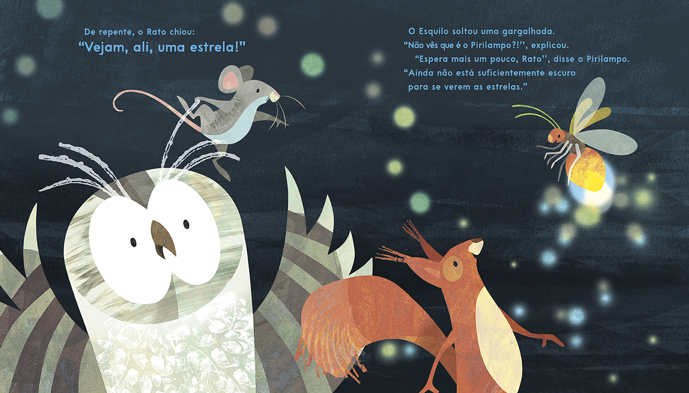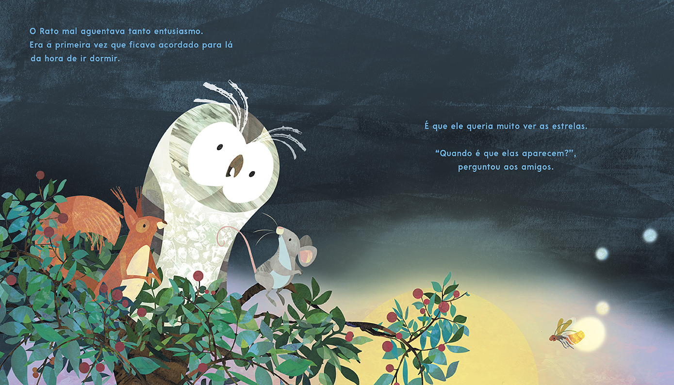 O Rato fica acordado até tarde para ver as estrelas. Mas será que vão aparecer? Talvez ele tenha até uma estrela especial mais perto ainda de casa...