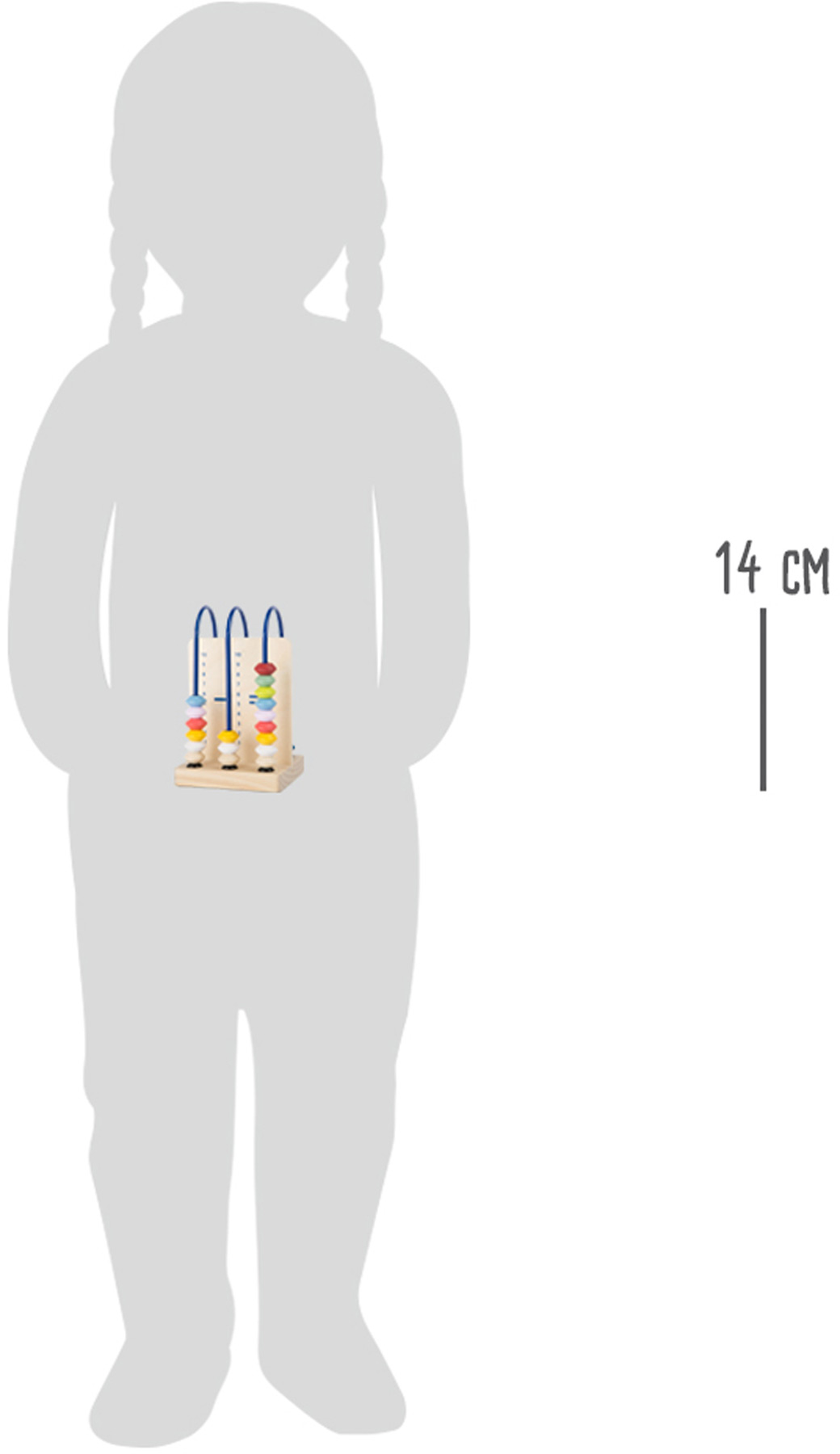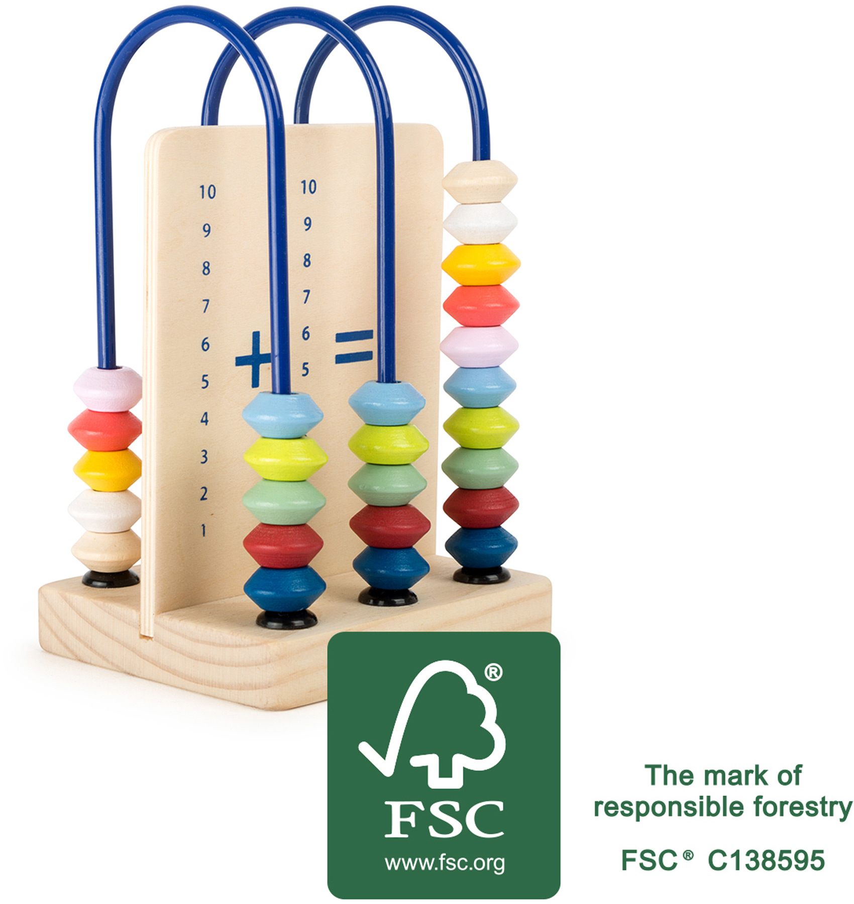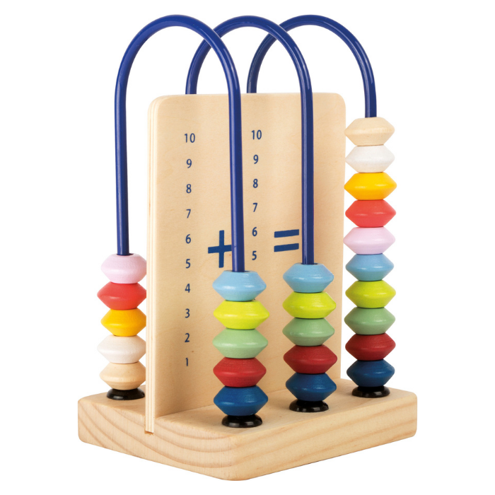 A matemática é divertida! Este ábaco com suas contas de madeira coloridas serve como um auxiliar visual de matemática para os primeiros encontros com aritmética. Vamos resolver a primeira equação?