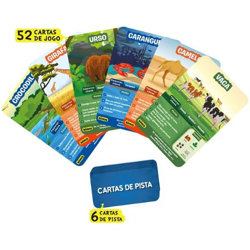 - Contém: 52 cartas de jogo, 6 cartas de pistas.