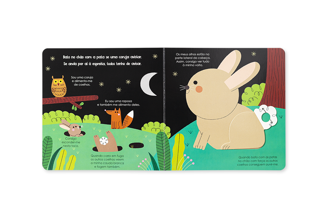 Um livro cartonado e com abas deslizantes, ideal para as mãos mais pequeninas, com conteúdo simples mas informativo sobre como vivem os animais. Contém ainda um conjunto de primeiras dicas sobre responsabilidade ecológica.