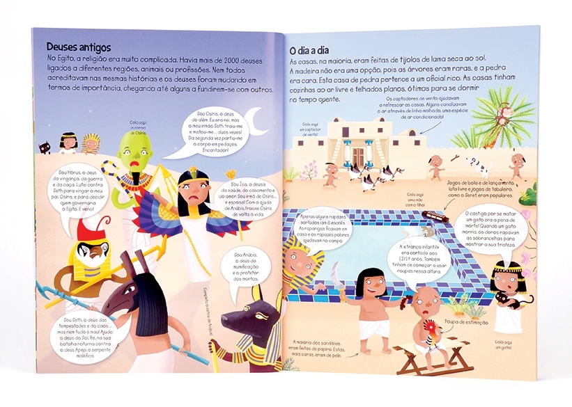 Viaja na História com autocolantes até ao Antigo Egito! Aprende coisas fascinantes acerca do antigo Egito, desde a vida no rio Nilo até à construção das grandes pirâmides e ainda como se faziam as múmias! De que é que estás à espera?