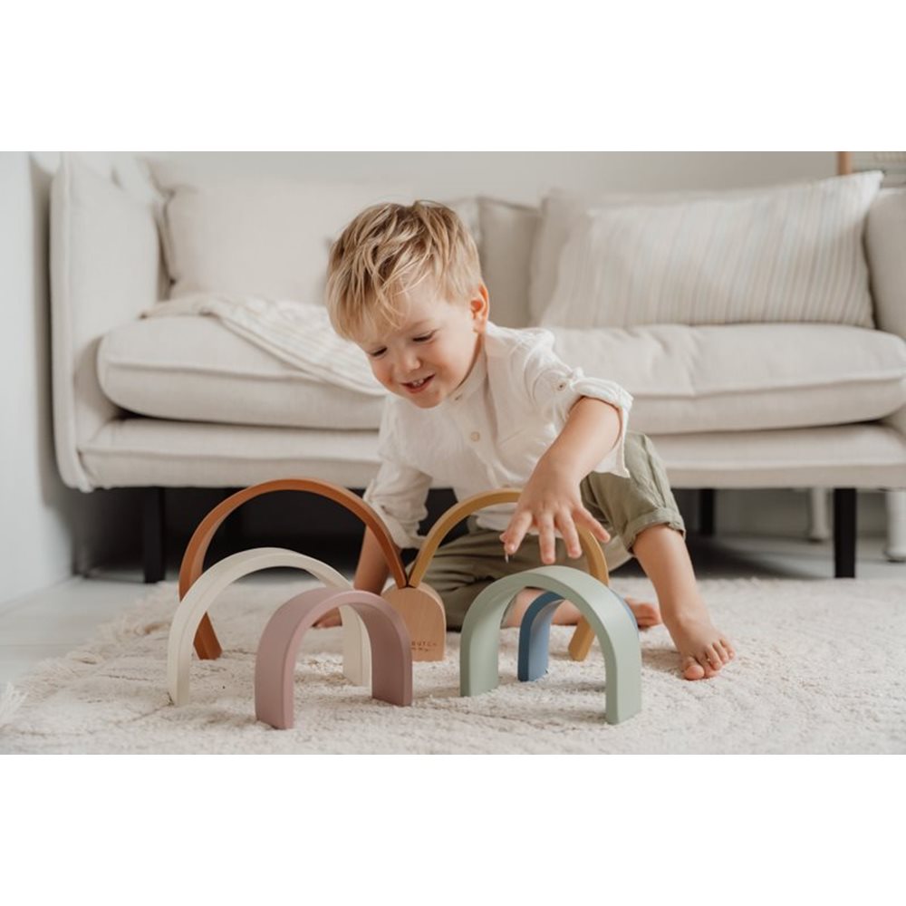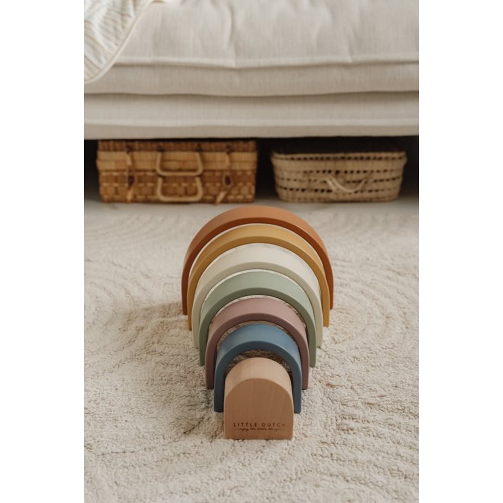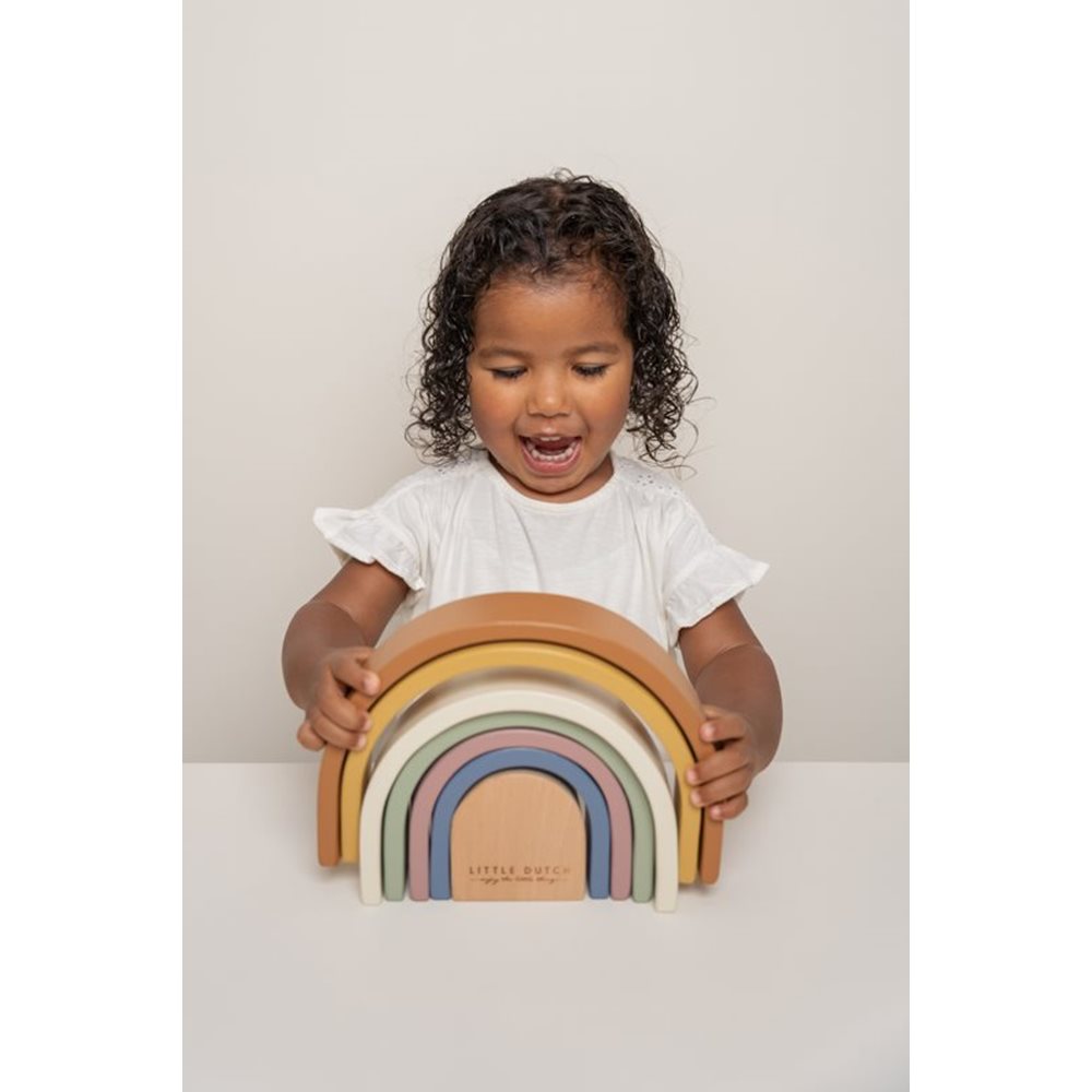 A imaginação dos pequenos exploradores vai andar à solta com este Arco-íris Vintage da Little Dutch. Vão poder empilhar, classificar, agrupar, construir... e muito mais, são inúmeras as brincadeiras!