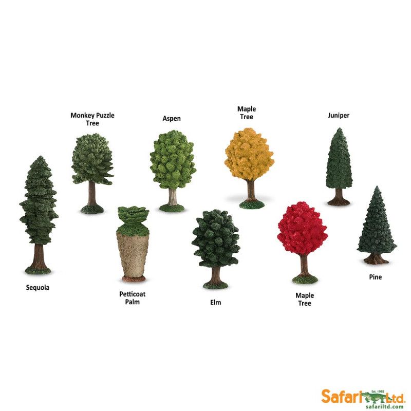 - Inclui: pinheiro, olmo, zimbro, quebra-cabeça de macaco, sequóia vermelha, anágua, álamo, álamo e 2 bordos.