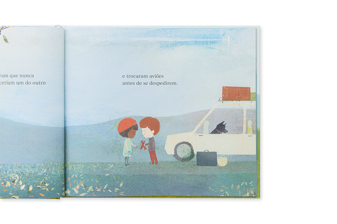 A Ana e o Pedro são os melhores amigos. Adoram construir aviões de papel e desejam, um dia, fazer um que consiga voar até à outra margem do lago. Mas as suas famílias vão morar para sítios diferentes… Conseguirão eles manter a amizade e concretizar o seu sonho? Uma história comovente sobre amizade e distância.