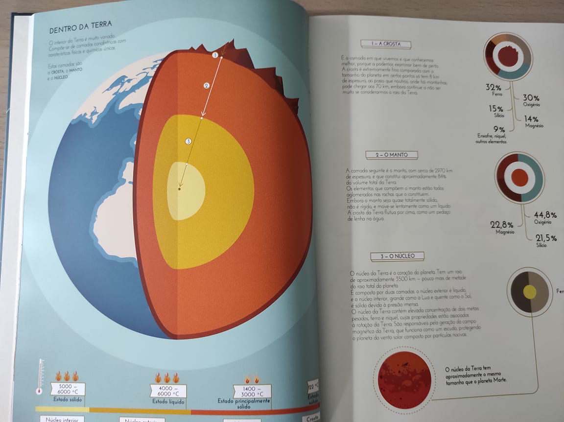 Este livro não é como os outros. Não está cheio de explicações complexas. Pelo contrário, os mistérios mais incríveis do nosso planeta são revelados através de textos curtos e claros, esquemas infográficos simples e apelativos, ilustrações coloridas e tabelas fáceis de consultar.