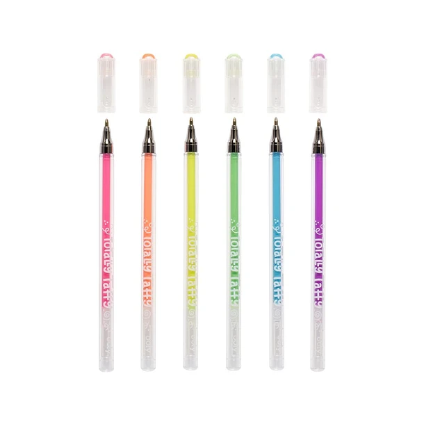 Estas são as Canetas de gel com o aroma mais delicioso! Um conjunto de seis unidades com cores pastel e aromas diferentes [morango, laranja, banana, maçã, uva e mitilo].