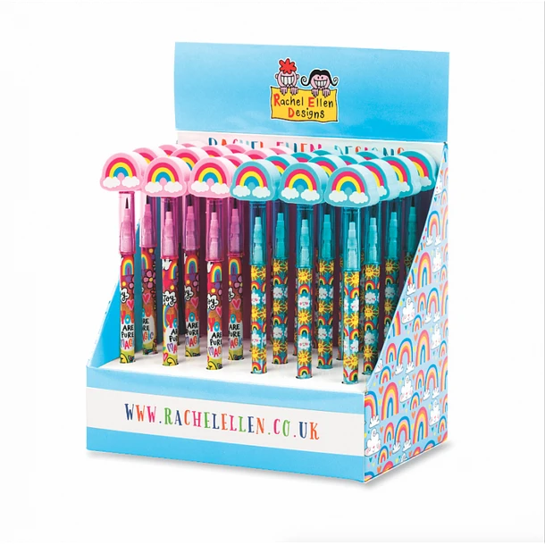Quem consegue resistir a este lápis de carvão pop-up? Inclui uma borracha em forma de arco-íris e pode escolher entre dois modelos: