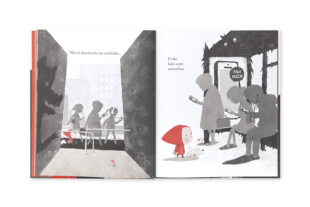 - Um livro com uma combinação entre texto e ilustração, sendo um clássico revisitado que adapta a História do Capuchinho à contemporaneidade.