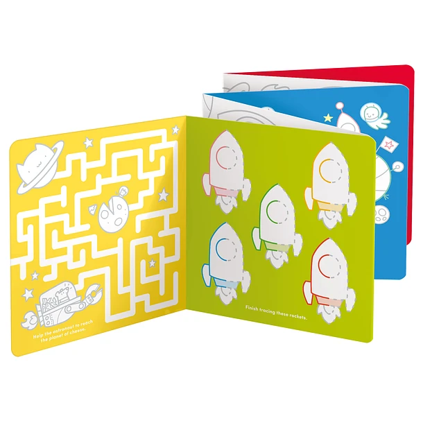 Desenha, pinta e aprende! Cada livro contém desenhos para colorire várias atividades divertidas como fazer grafismos, encontrar diferenças, sombras semelhantes, ligar os pontos ou simplesmente desenhar e colorir.