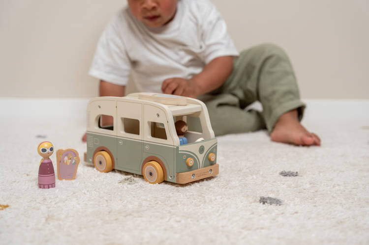 Vamos viver uma nova aventura? Com a Vintage Van os mais pequenos podem imaginar ir até à praia ou fazer um passeio em família. O teto é removível para que as quatro figuras possam entrar e sair facilmente, a porta da traseira também abre para que possam guardar a bagagem.
