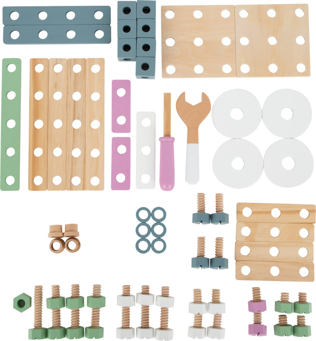 Com este conjunto de construção a imaginação dos pequenos exploradores vai andar à solta! Este brinquedo de madeira permite fazer construções tridimensionais únicas, desde um trator, um avião, pontes e muito mais.