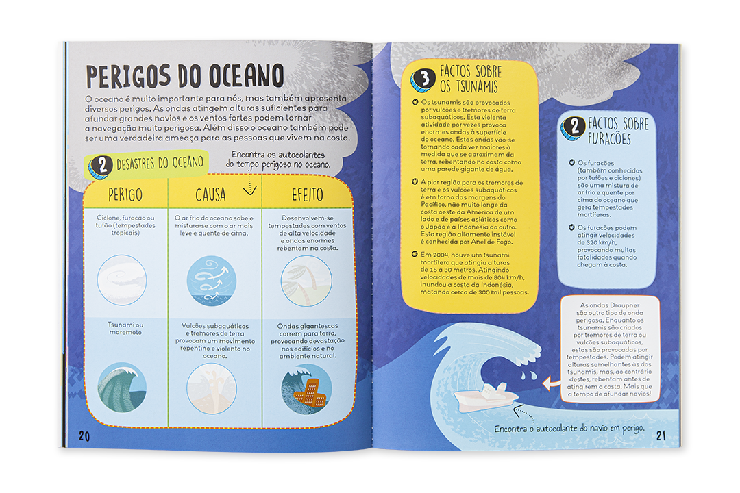 Um livro de atividades com autocolantes que brilham no escuro e mais de 100 factos incríveis para aprenderes sobre os Oceanos. Quais os segredos que esconde, quem são os seus habitantes ou que perigos apresentam para os humanos, entre muitos outros. Mergulha nestas páginas e explora o fantástico mundo por baixo das ondas!