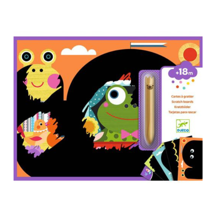 - Inclui: 5 folhas para raspar e uma caneta em madeira com ponta arredondada.