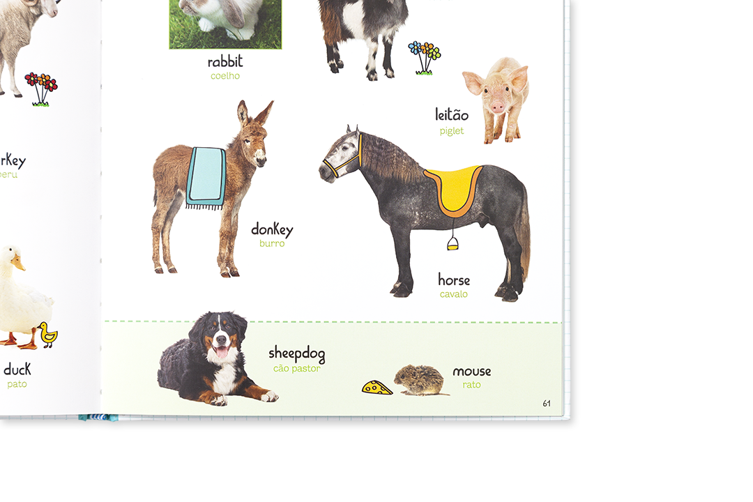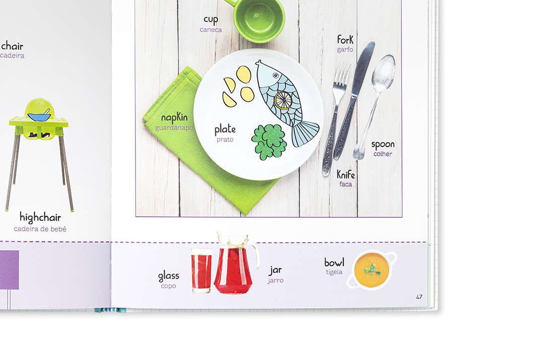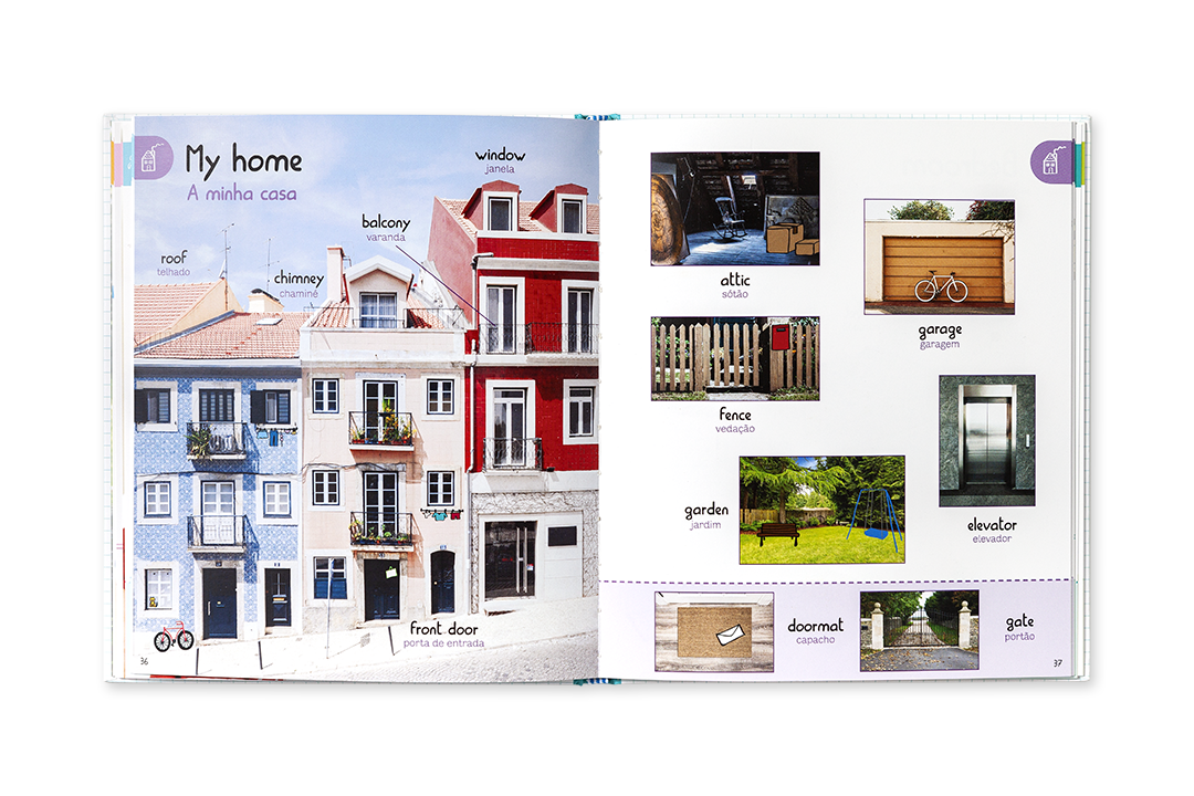 - Dicionário por imagens, com capa dura, dividido por temáticas e ilustrado com fotografias para uma mais fácil identificação/relação com a realidade.