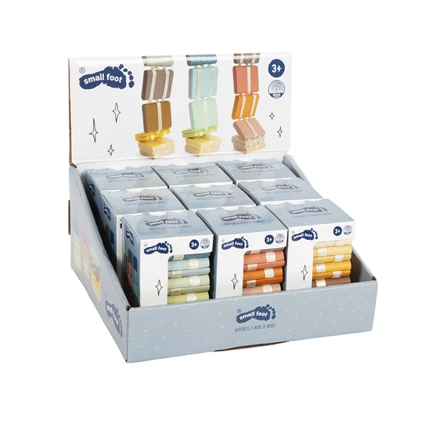 Um fascinante brinquedo de madeira, com uma moderna combinação de cores, que capta a atenção de miúdos e graúdos, perfeito para levar para qualquer lugar.
