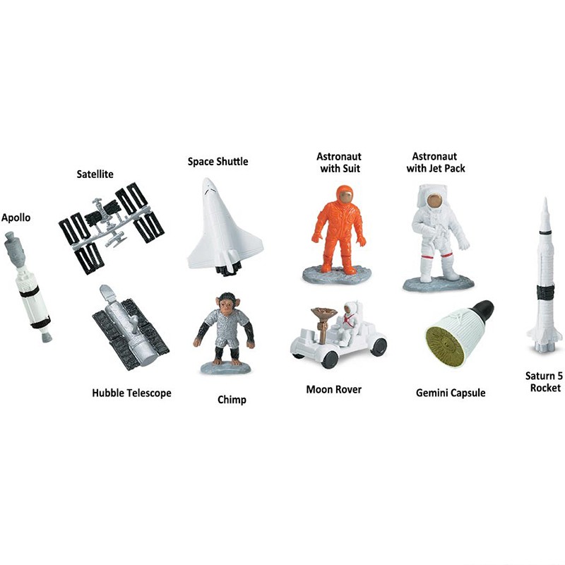 Tubo miniatura com 10 figuras alusivas ao espaço. Essas miniaturas são perfeitas para os pequenos exploradores brincarem, mas também aprenderem ainda mais.