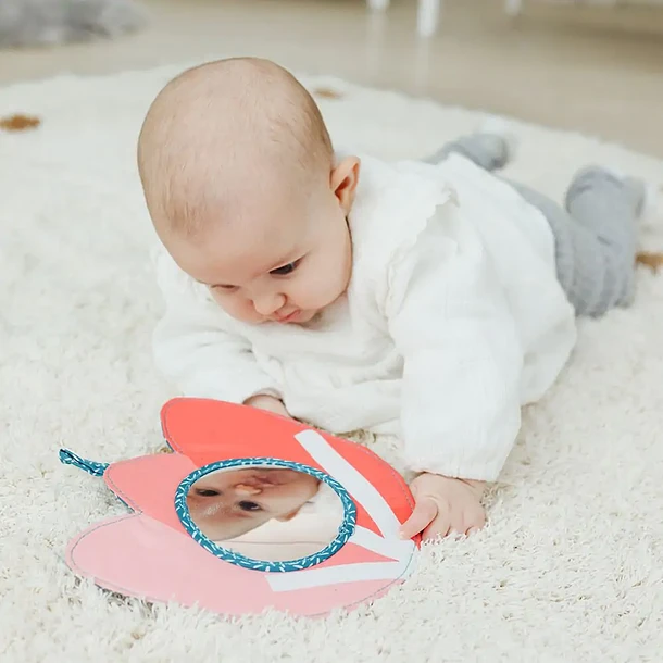 Um brinquedo simples, mas cheio de surpresas... desde a emoção de se descobrir refletido no espelho, até o estalar das suas bordas ao ser apertado, o que vai ajudar o bebé a aprender através da emoção e do desenvolvimento cognitivo.