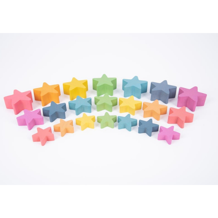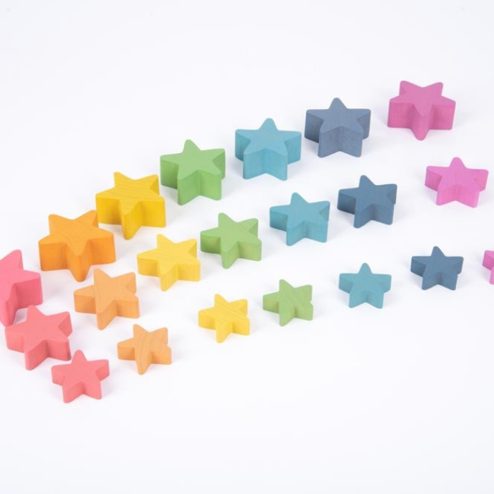 Este conjunto de estrelas, em madeira faia, com as sete cores do arco-íris vão proporcionar muitos momentos de diversão aos pequenos exploradores. As estrelas são um recurso tátil adorável, robusto o suficiente para mãos pequenas manipularem.