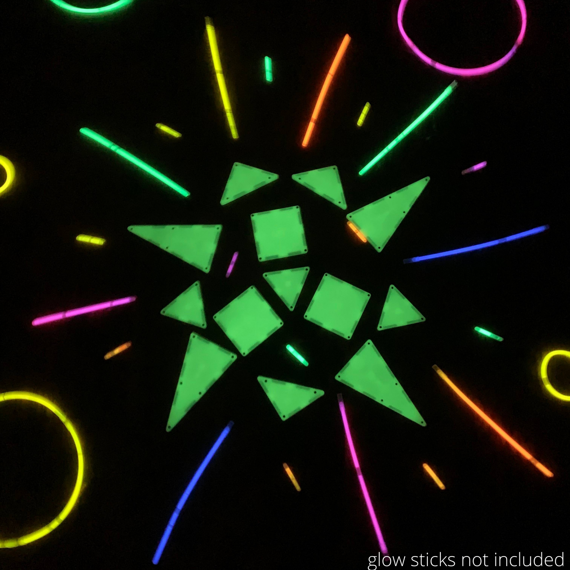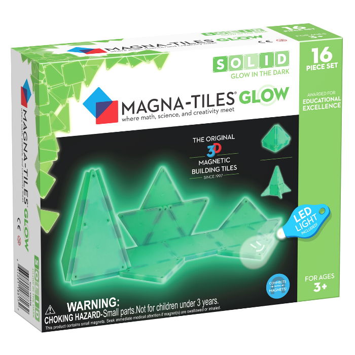A imaginação dos pequenos exploradores vai andar à solta com este conjunto de 16 peças coloridas da Magna-Tiles que brilham no escuro. É um incentivo à brincadeira livre, às construções, associações, contagem... e muito mais, não há limites!