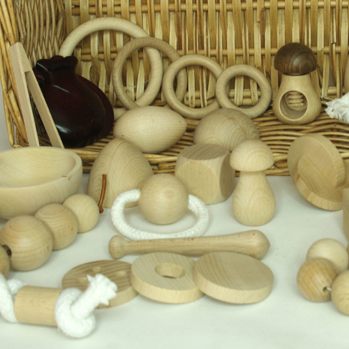Esta grinalda com três bolas de madeira, enfiadas num cordão de algodão, é ideal para os pequenos exploradores experimentarem a sua forma, textura, peso e tamanho. Ao mesmo tempo, é perfeita para incluir nos cestos dos tesouros.