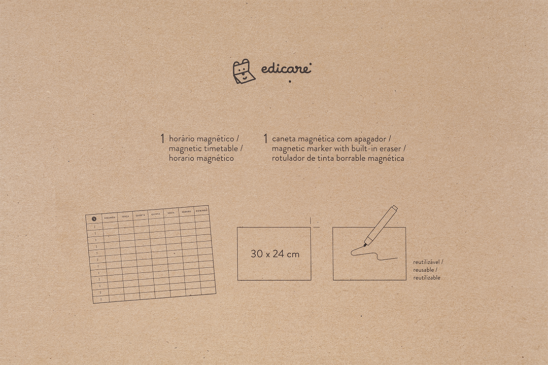 Este horário magnético, com caneta de escrever e apagar, vai permitir aos pequenos exploradores alterar ou acrescentar atividades sempre que necessário.