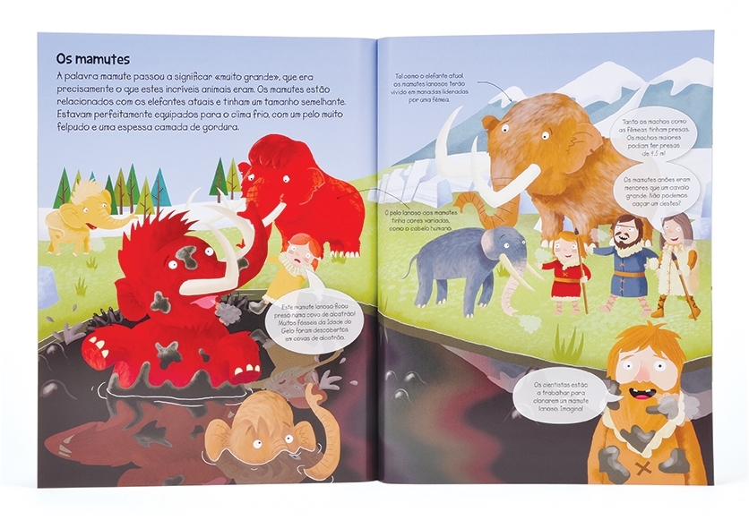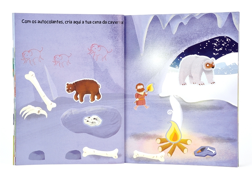 Viaja na História com autocolantes até à Idade do Gelo! Vem conhecer os nossos antepassados e descobre animais incríveis que andavam pelo planeta, desde mamutes a ursos-das-cavernas! De que é que estás à espera? Agasalha-te bem e entra na Idade do Gelo.