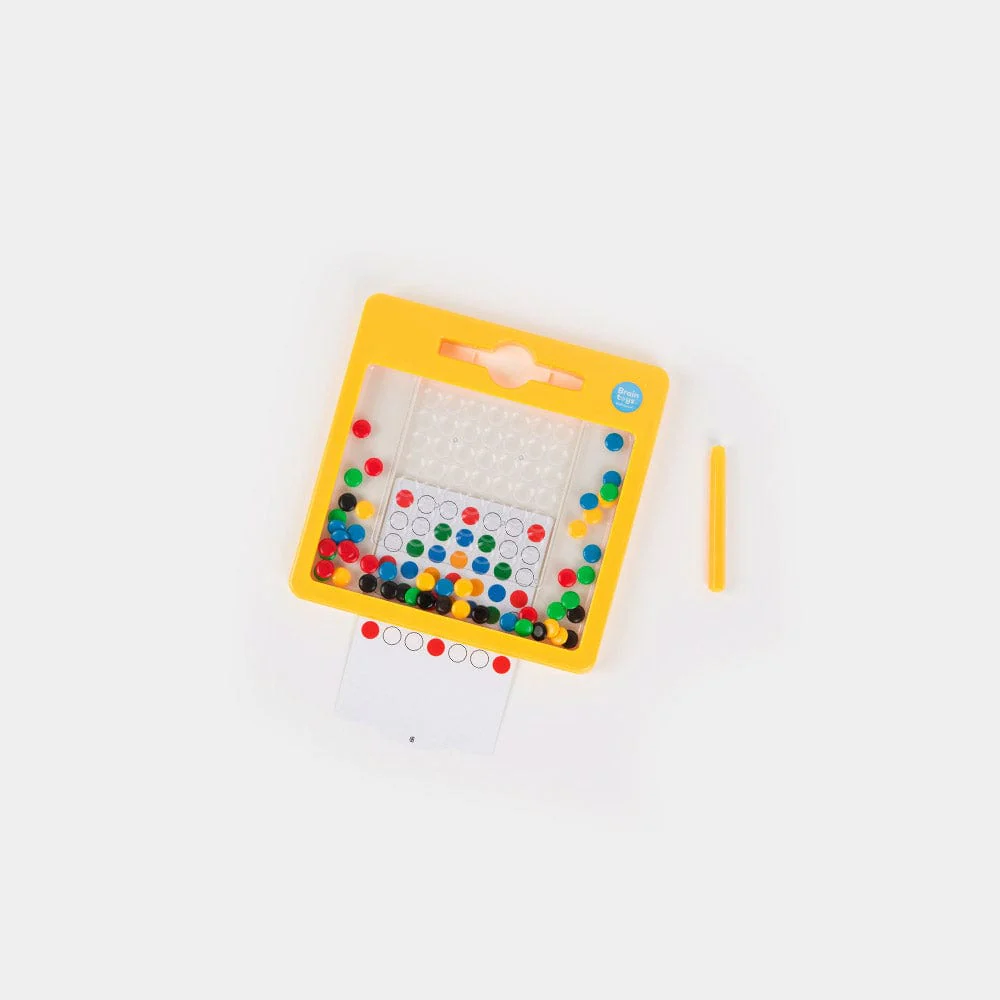 A diversão dos pequenos exploradores está garantida em qualquer lugar com o Imadots Mini, da Braintoys. Com o quadro e a caneta magnética, desenhar é tão fácil quanto deslizar a caneta magnética sobre o quadro! Para além disso, inclui cartões duplos com vários desafios e desenhos para replicar.