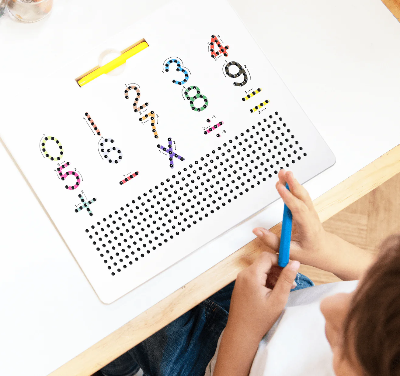Com a caneta magnética, as crianças vão poder praticar a direção e desenho dos númetros e letras. Este é um quadro versátil, potenciando o desenvolvimento da motricidade fina, a coordenação mão-olho, o reconhecimento de letras | números e muito mais.