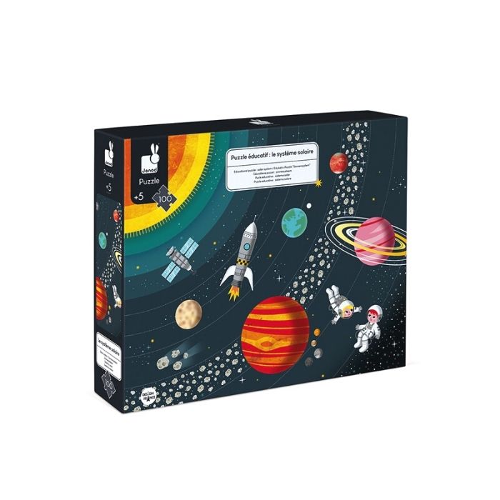 Os pequenos exploradores vão aprender enquanto brincam! Com este puzzle em cartão da Janod vão poder saber ainda mais sobre o sistema solar.