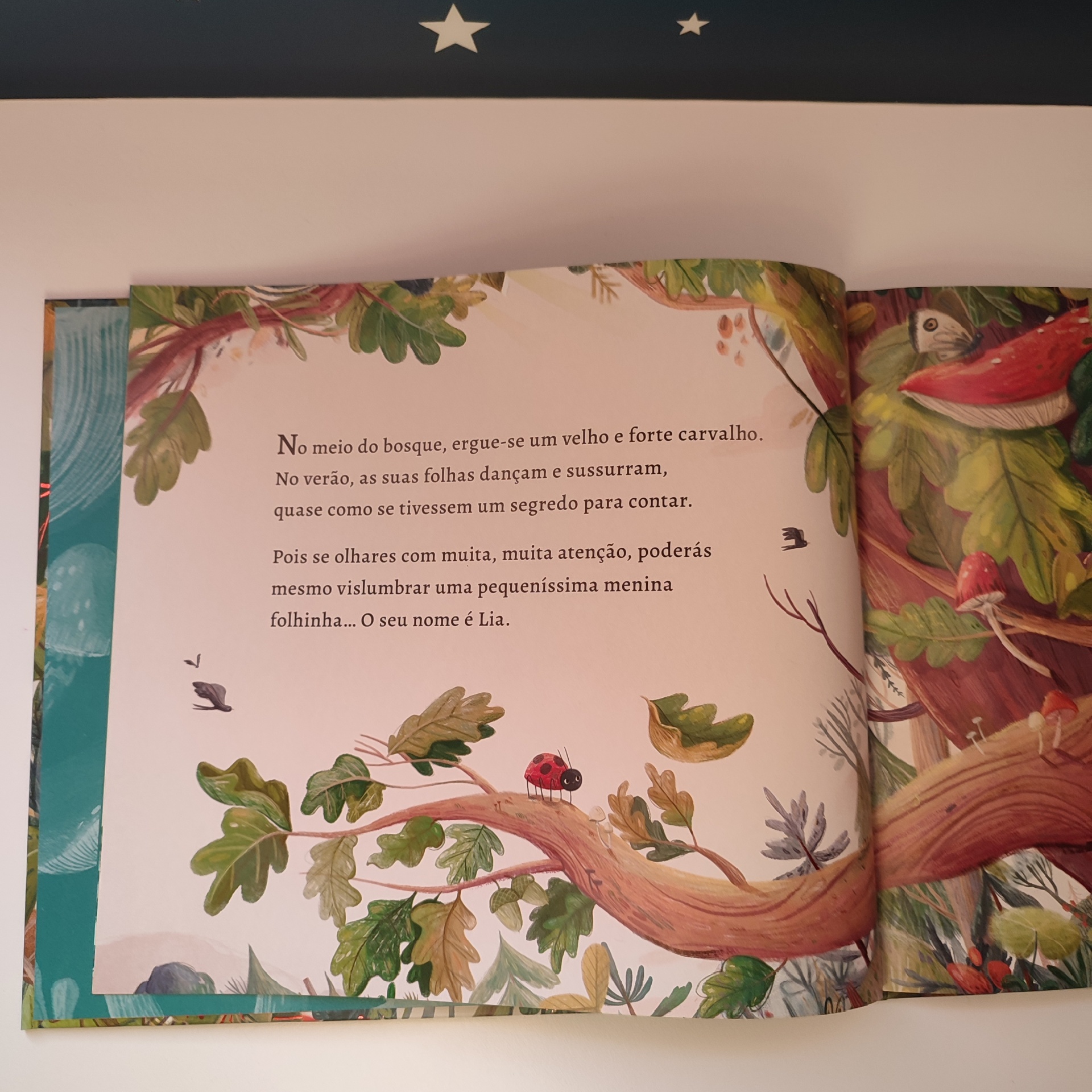 Se olhares com muita, muita atenção, por entre as folhas sussurrantes de um velho e forte carvalho, poderás mesmo vislumbrar uma pequeníssima menina folhinha... O seu nome é Lia.