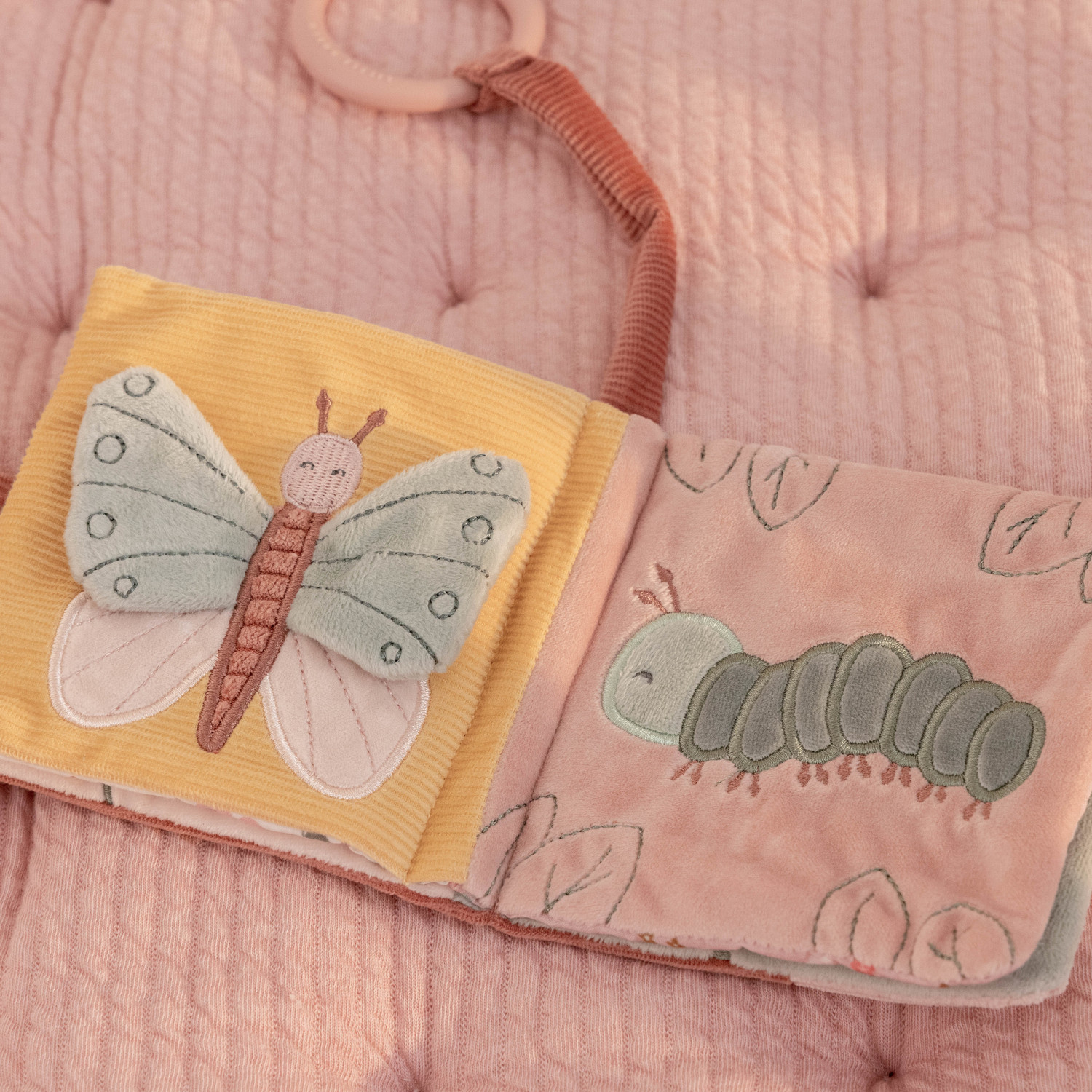 Este livro de tecido, a pensar nos exploradores mais pequeninos, vai despertar os sentidos através das diferentes texturas e desenvolver a coordenação mão-olho.