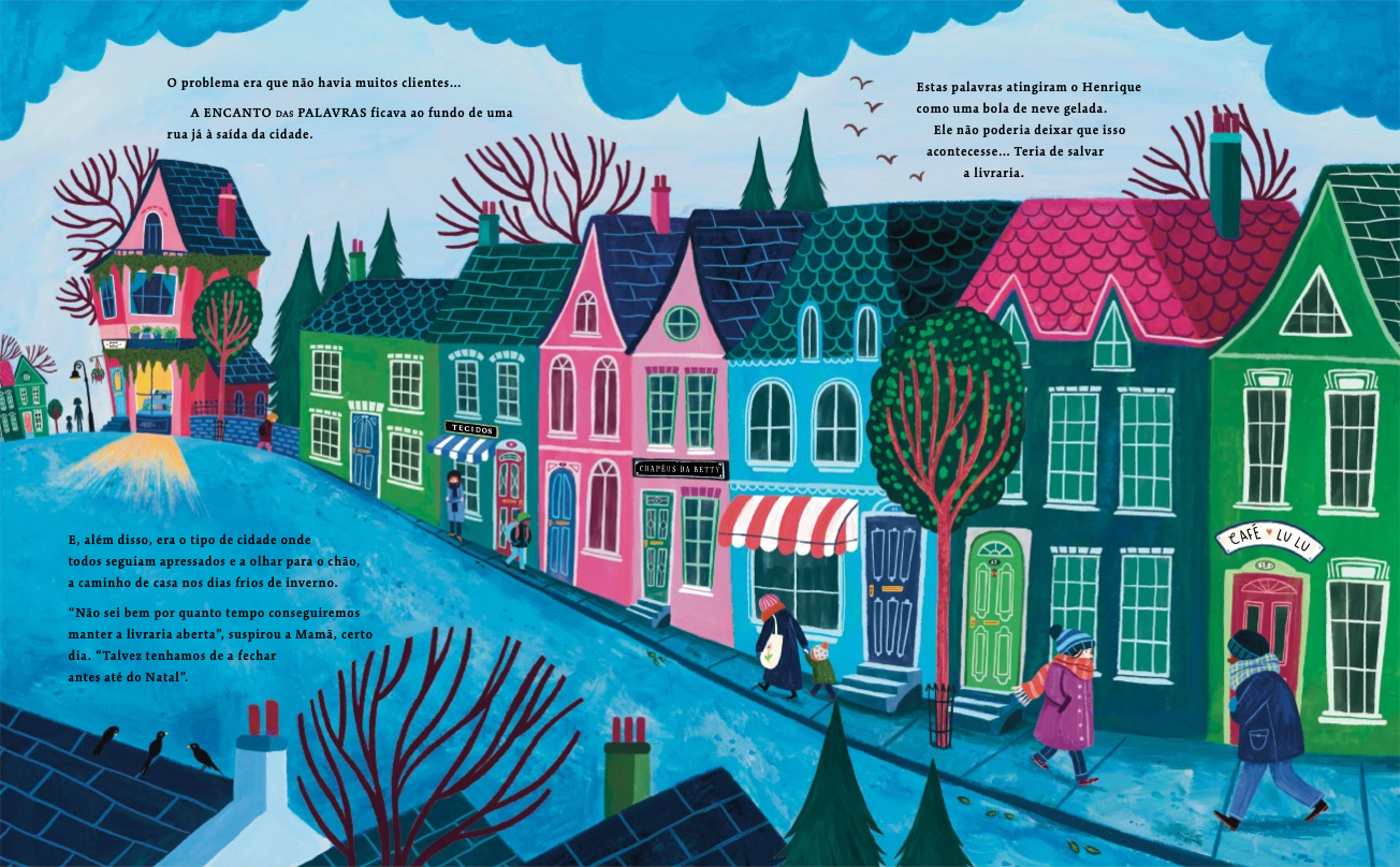 Ao fim da rua de uma cidade, havia uma pequeníssima livraria a abarrotar de histórias e encanto. Esta era também a casa do Henrique. Quando, certo inverno, a Mamã lhe diz que a livraria talvez tivesse de fechar portas em breve, o Henrique tem uma ideia de como a salvar e garantir que este seria um Natal que ninguém iria esquecer…