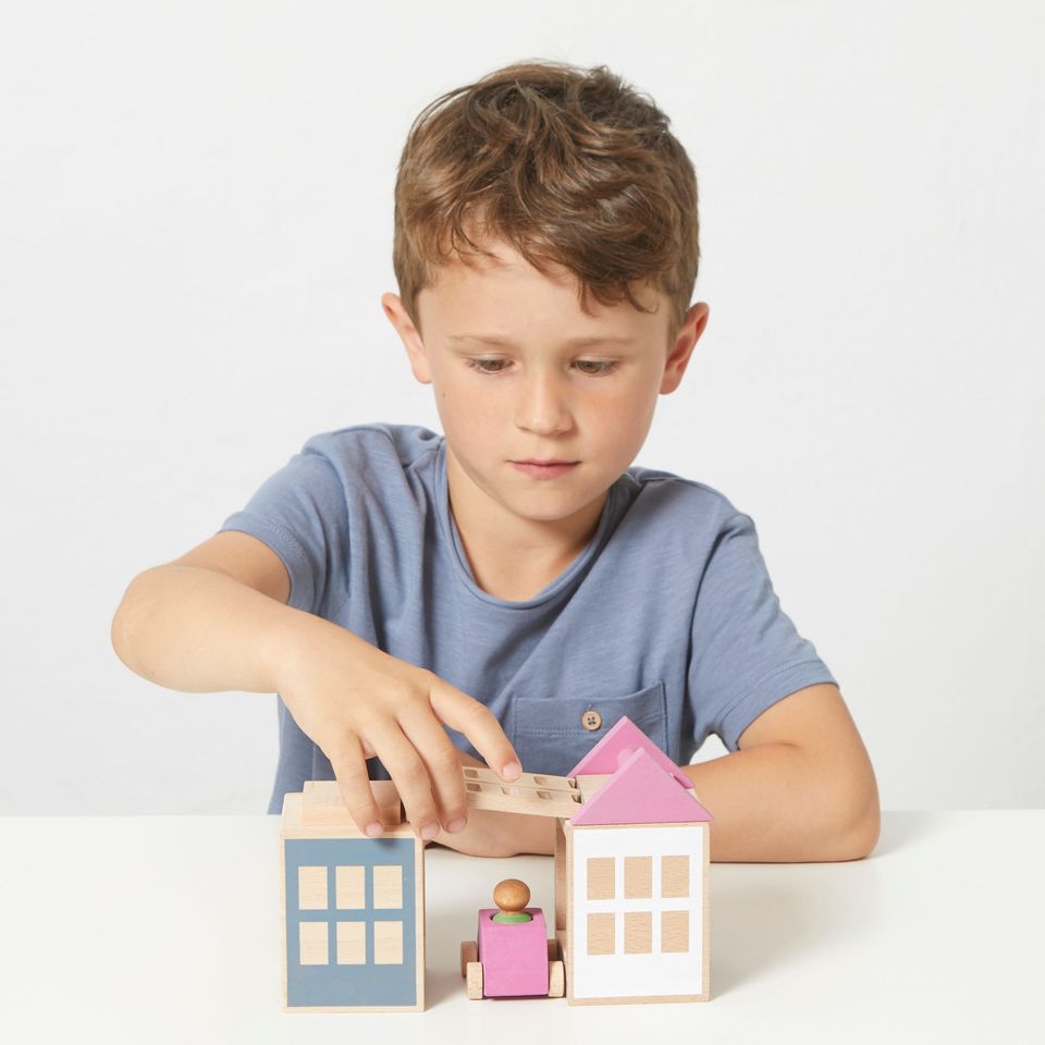 Os Lubu Town Mini permitem que as crianças imaginem histórias e brinquem de uma maneira muito criativa, sendo um brinquedo único com um design minimalista.