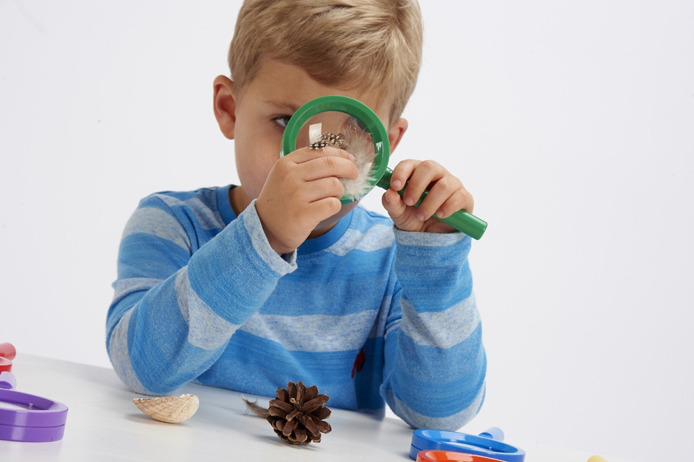 Esta é uma lupa colorida, ideal para investigar insetos, folhas e padrões na natureza.