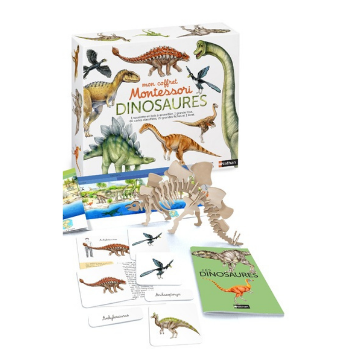 Um Coffret Montessori para os pequenos exploradores saberem tudo sobre dinossauros, um verdadeiro convite à descoberta e aprendizagem.