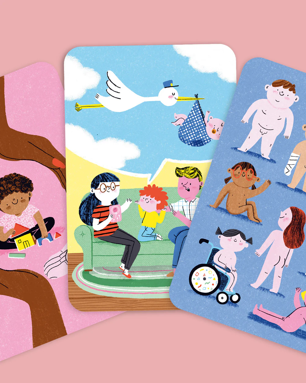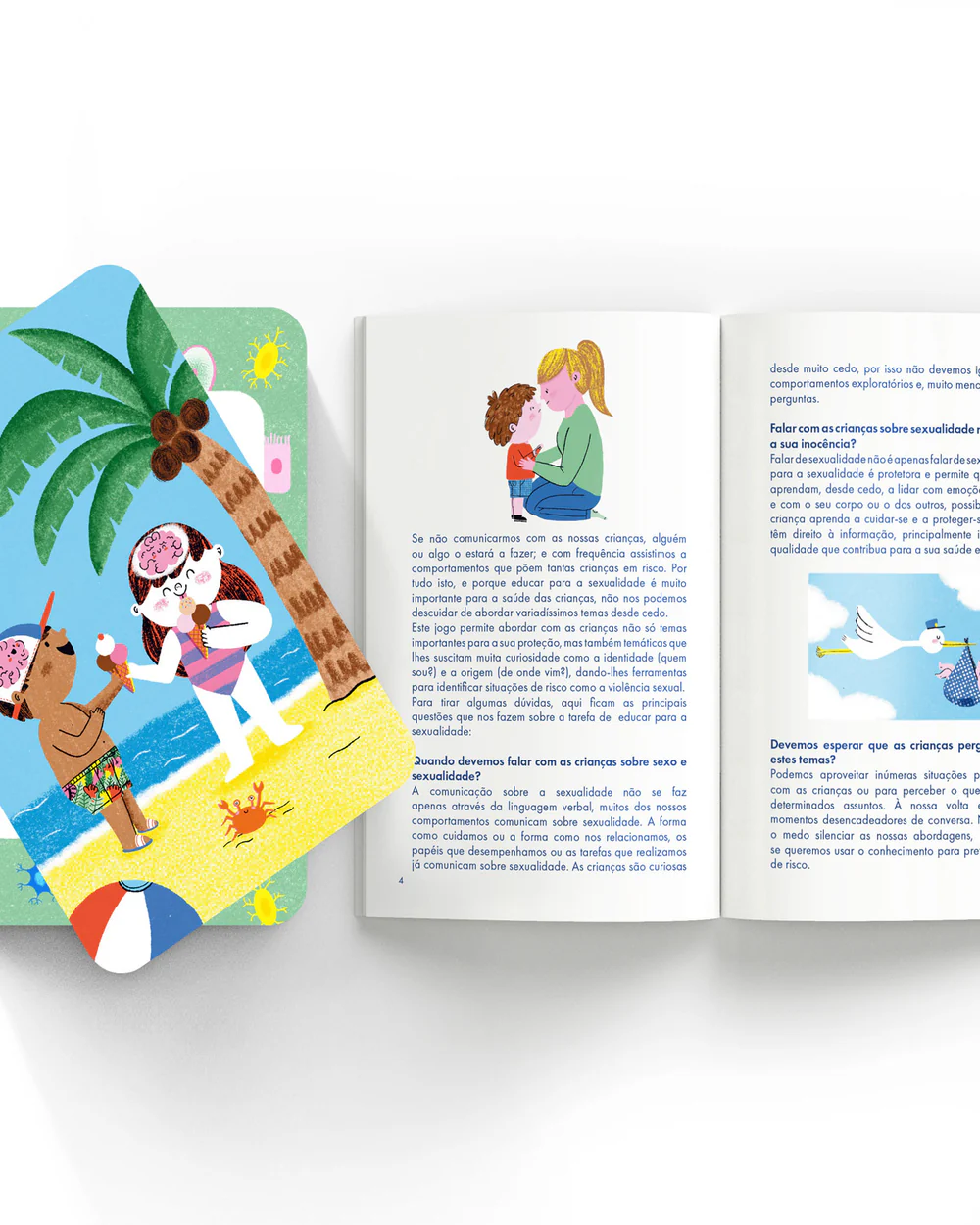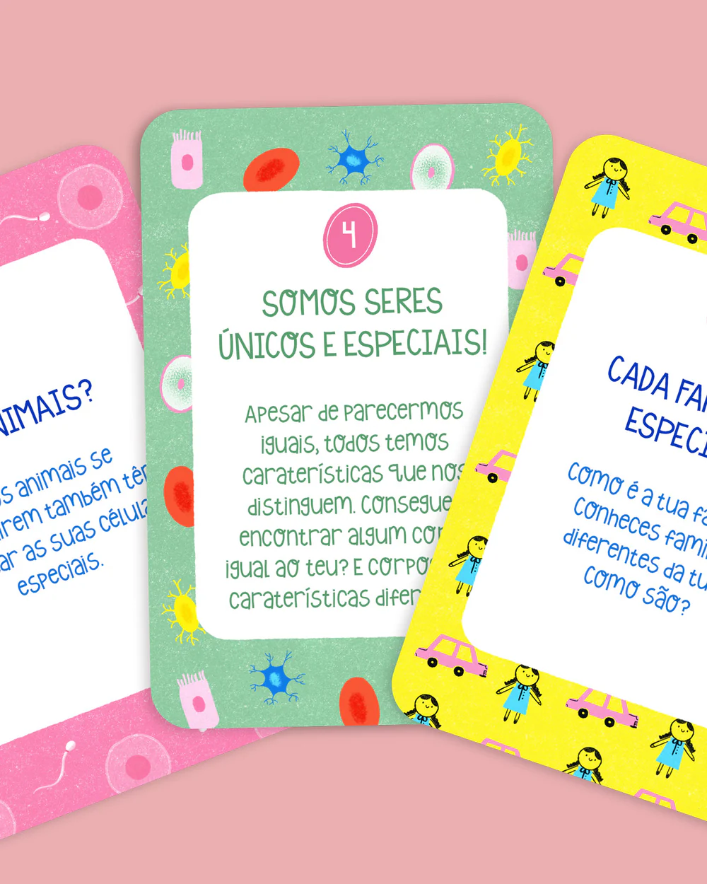 Nesta caixa vais encontrar 30 cartas sobre: gênero e sexualidade, o corpo e as emoções, proteção e consentimentos e o ciclo da vida, e um livro que te vai ajudar a descobrir e explorar estes tmas em família.