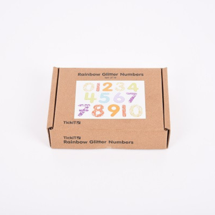 Um conjunto de 14 números glitters de 0 a 9 que inclui dois estilos de números 4 e 7, com 1 e 0 adicionais. Os números vêm com um orifício de 2,5 mm no ponto de equilíbrio superior para que possam ser pendurados ou fixados.