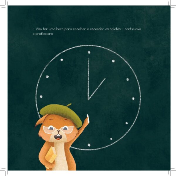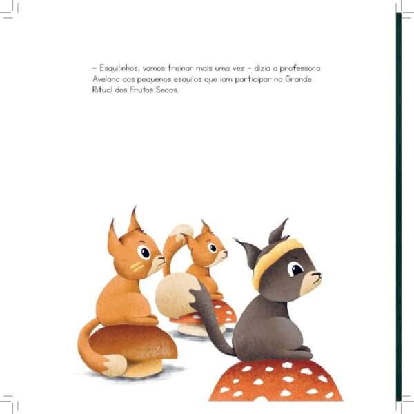 Nesta história vamos perceber que é importante saber olhar para as coisas de uma forma diferente e não desistir. O que pode parecer mau, pode transformar-se em algo bom. Neste caso, o esquilo vai perder uma competição, mas os conselhos da avó vão ajudá-lo a perceber que das bolotas perdidas vão nascer muitos carvalhos.
