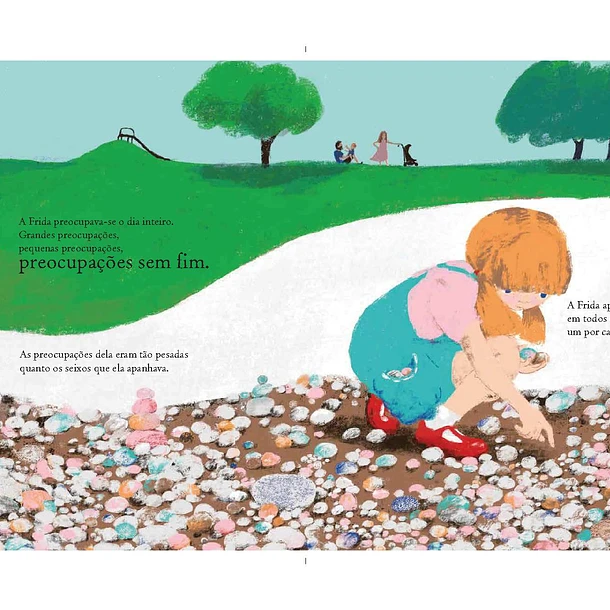Frida é uma menina que está sempre preocupada. As suas preocupações são tão pesadas quanto os seixos que ela apanha todos os dias. Há dias, em que as preocupações de Frida se tornam na única coisa em que ela consegue pensar.