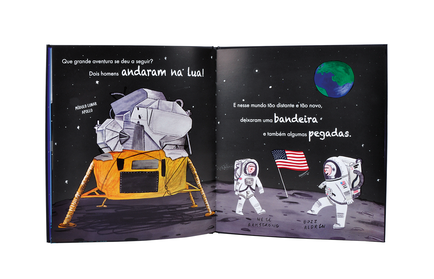 - Livro de capa dura, que contém dados históricos e factos breves sobre as viagens espaciais apresentados sob uma narrativa de linguagem simples e acessível.