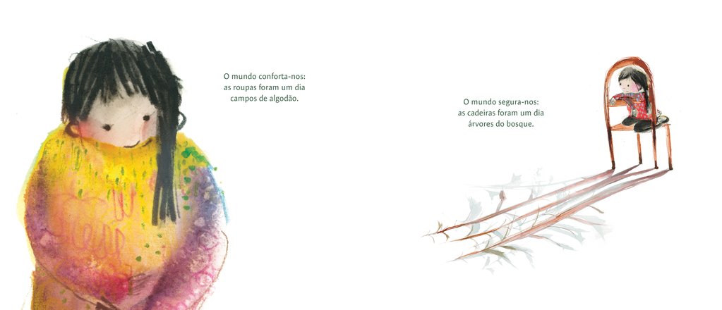 Em casa, no carro ou na escola. Virados para dentro, esquecidos do mundo. Então, o mundo procura-nos: um ramo bate na janela, ouve-se tic-tic no telhado. A terra dá-nos pão e frutos, roupa e abrigo. Entra-nos casa adentro com murmúrios, cheiros frescos e torrados, o toque de um cão, uma teia de aranha. O mundo diz-nos: “Estou aqui. Sinto a tua falta.” E nós vamos ter com ele.