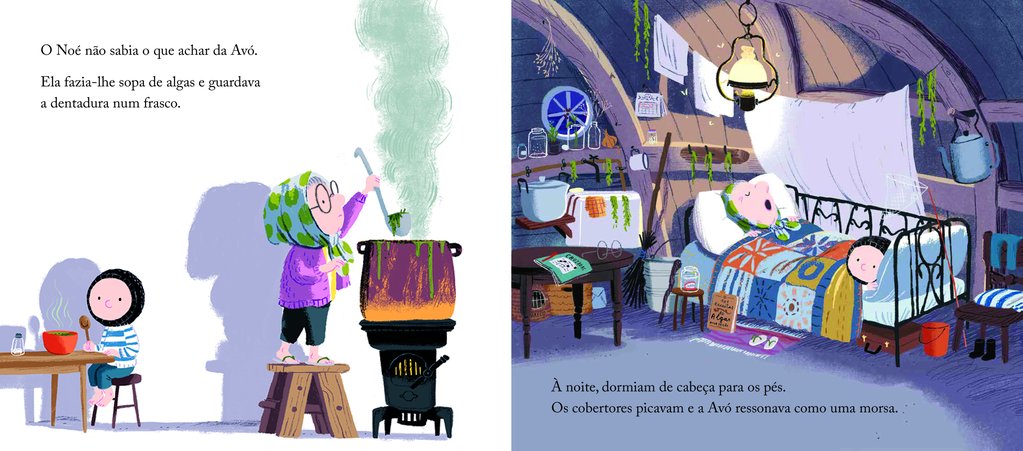 O Noé diz até já ao pai e aos seis gatos e vai passar uns dias à ilha onde vive a avó. Mas o rapaz não sabe o que pensar: a avó faz sopa de algas, ressona como uma morsa e nunca tem tempo para brincar.
