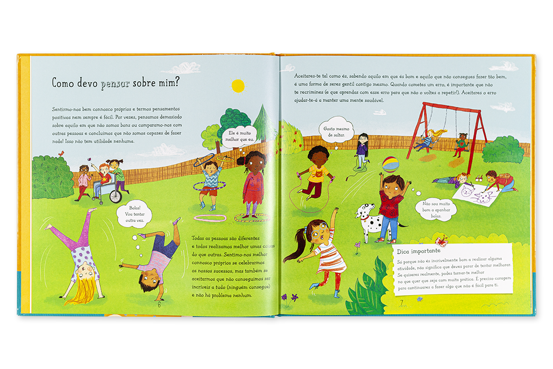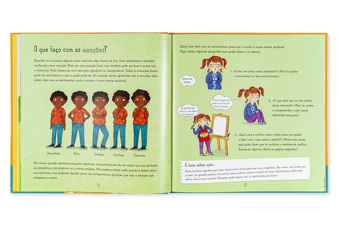Este livro ajuda as crianças a explorar em formas práticas de manter a mente e o corpo em boa forma, ao mesmo tempo que auxilia os pais a conversar com os filhos sobre o que os inquieta ou como estabelecer hábitos para ter uma mente saudável.