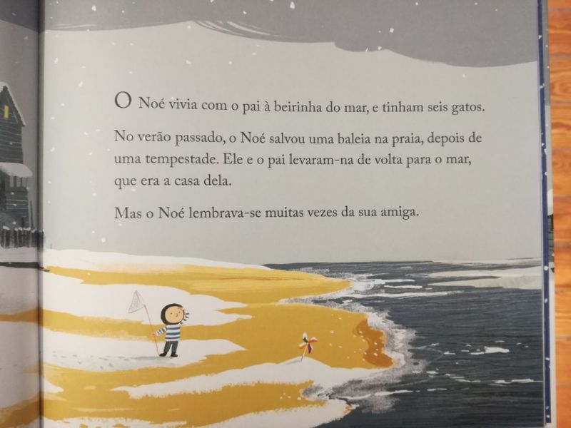 O Noé vive com o pai à beirinha do mar. No Verão, salvaram uma baleia que tinha dado à costa na praia. Agora chegou o Inverno, e o barco do pai ainda não regressou do mar.