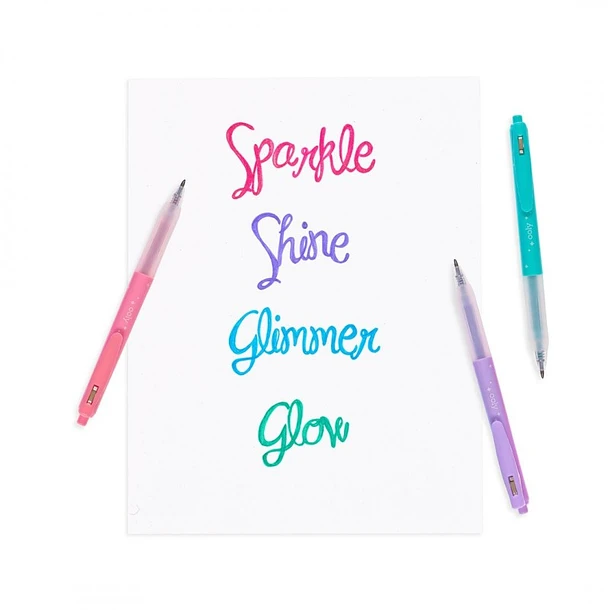 Estas são as Canetas de gel com cores pastel mais giras! Um conjunto de quatro canetas com cores diferentes e tintas com brilhantes [glitter].
