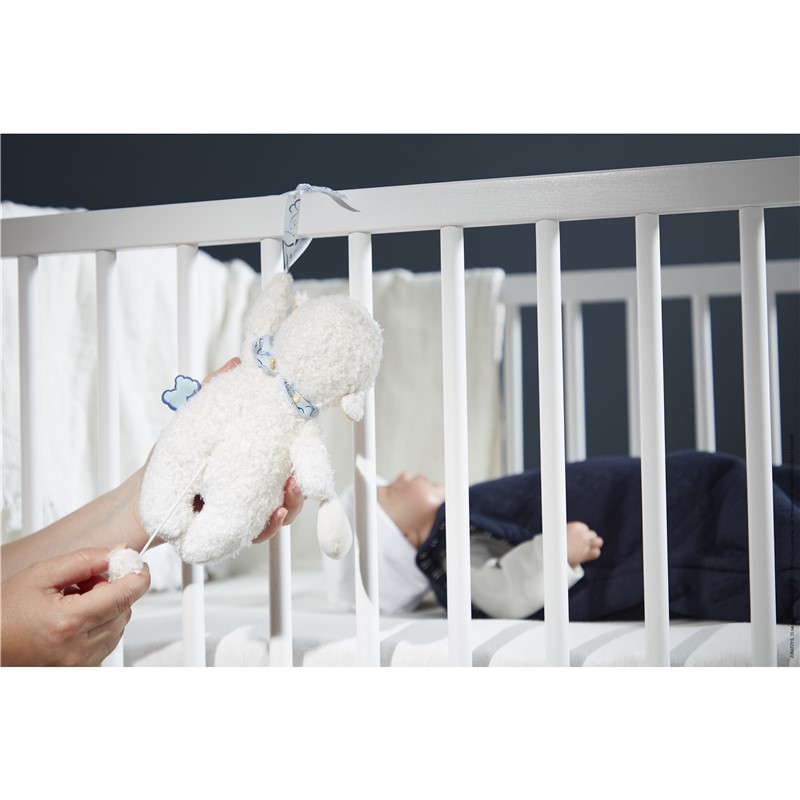 Um peluche musical a pensar nos exploradores mais pequeninos, para sonos mais tranquilos ao som da doce música Hush Little Baby [basta puxar o pompom das costas].