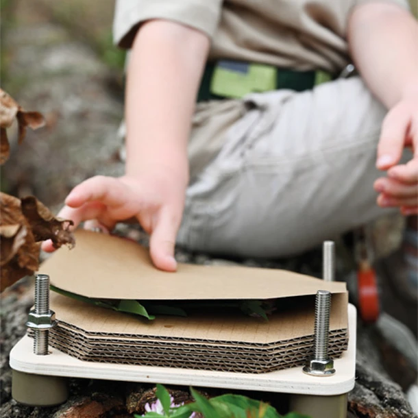 Os pequenos exploradores vão adorar esta prensa de flores e folhas. É um convite às caminhadas e passeios na natureza para encontrarem verdadeiros tesouros, à observação dos pequenos detalhes e à delicadeza para conservarem os elementos da natureza.
